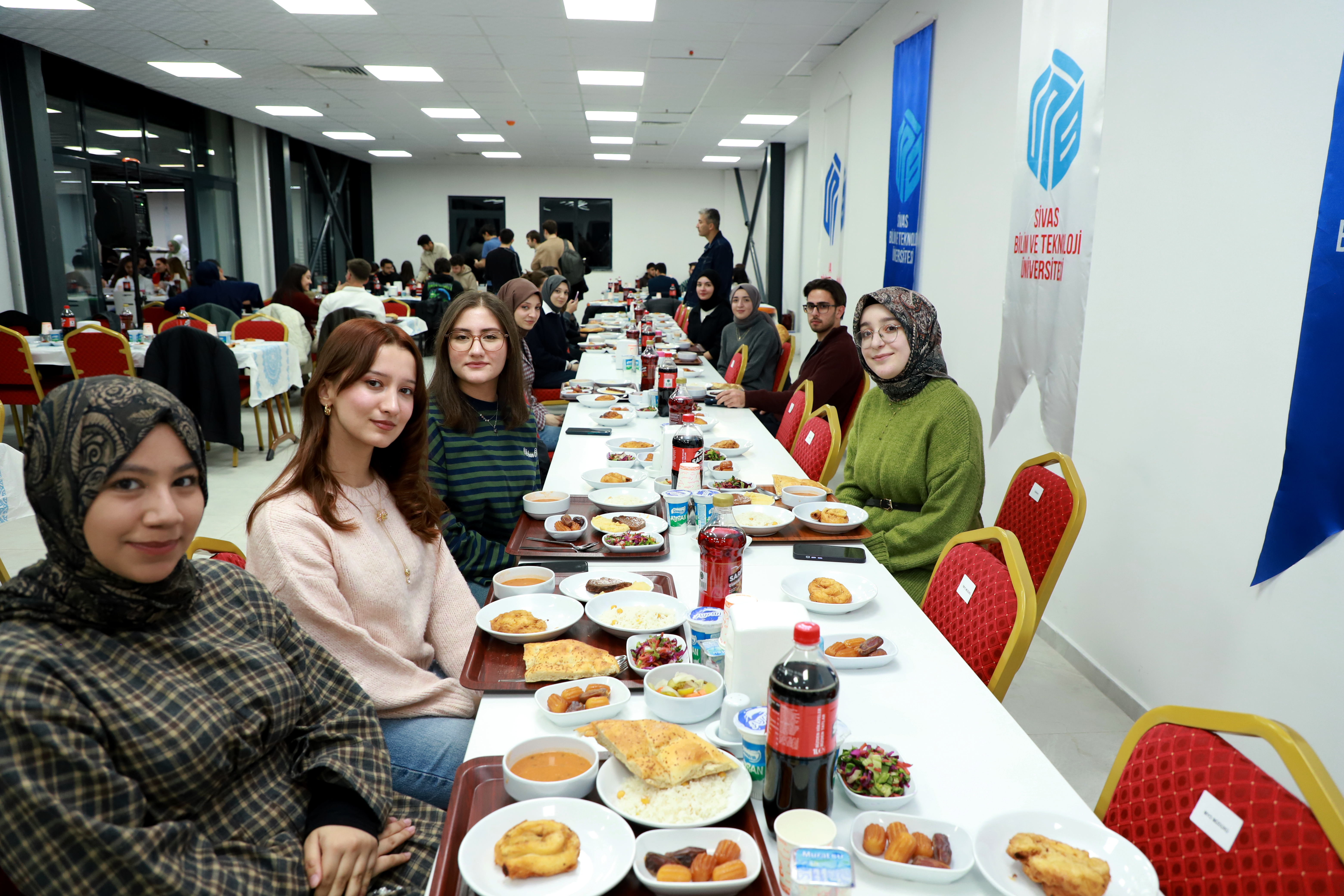 Sivas Bilim ve Teknoloji Üniversitesi’nde düzenlenen öğrenci iftar programında, öğrencilerimiz ve akademisyenlerimiz aynı sofrada buluştu. Paylaşılan lokmalar ve samimi sohbetler Ramazan’ın birlik ve beraberlik ruhunu kampüsümüze taşıdı.