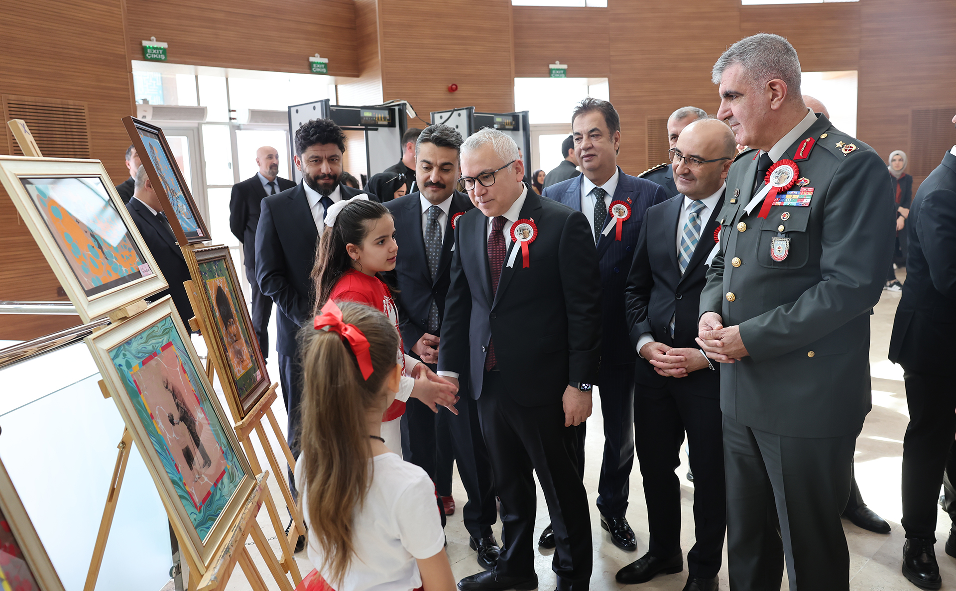 Programın ardından öğrenciler tarafından hazırlanan Atatürk ve çocuk temalı ebru sergisi ziyaretçilere açıldı.