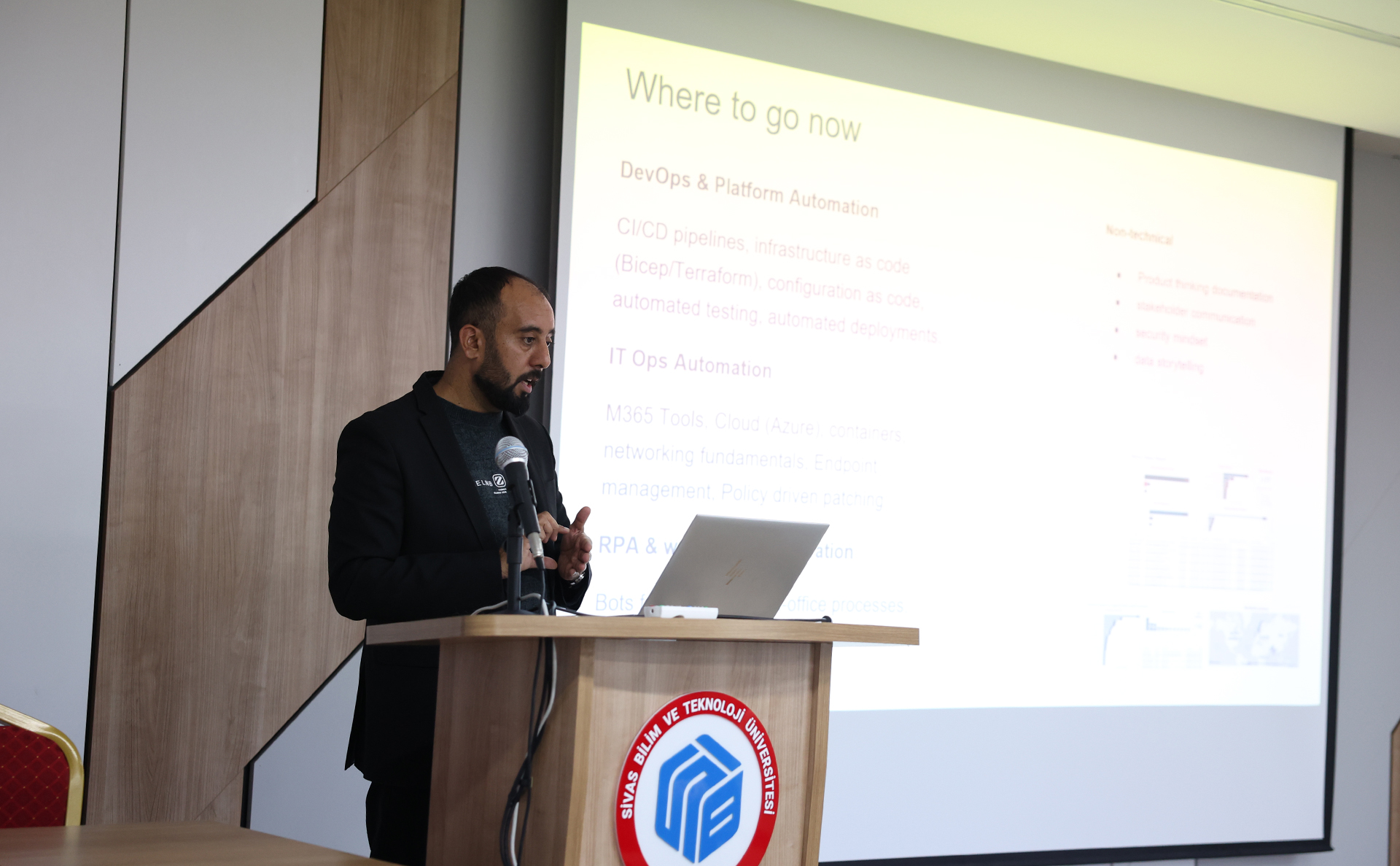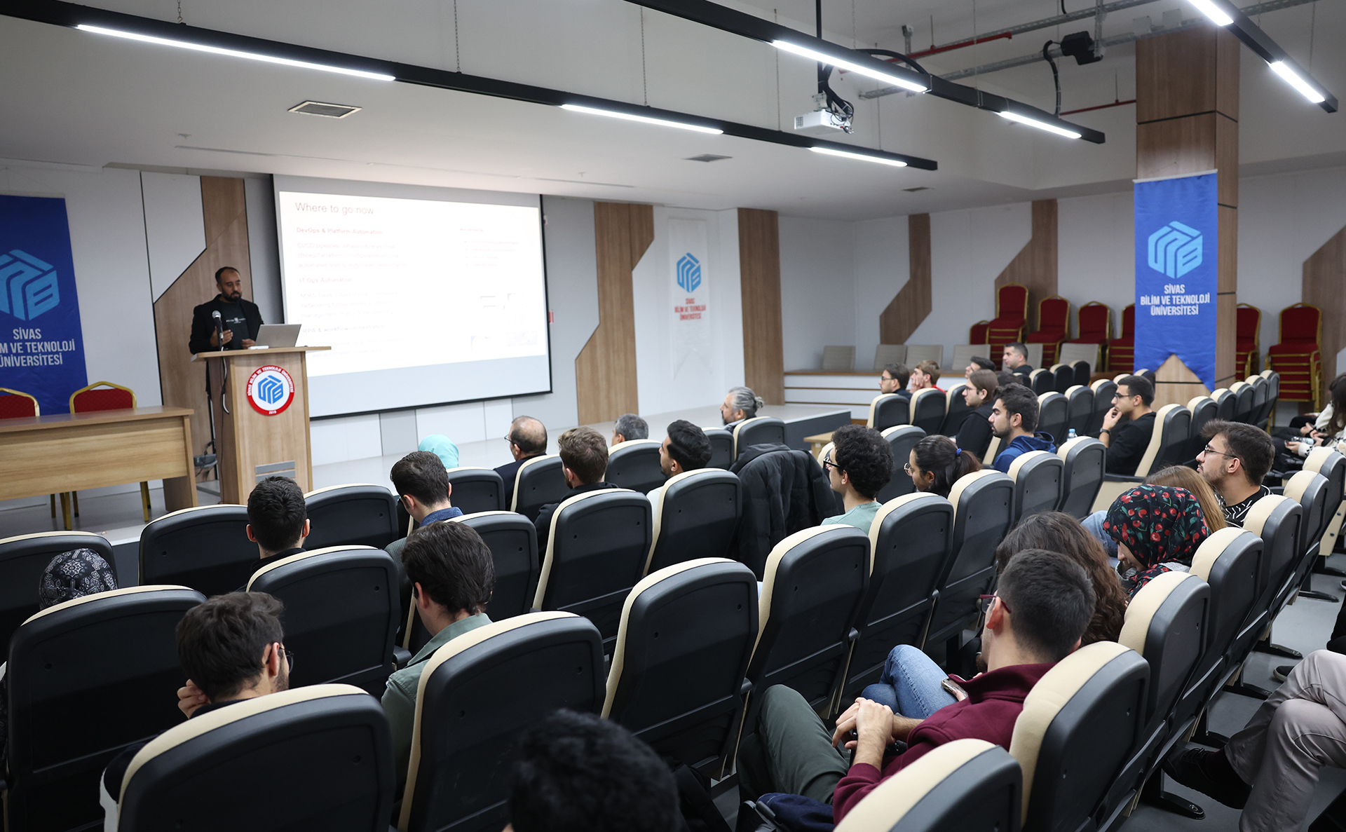 Sivas Bilim ve Teknoloji Üniversitesi’nde, dijital dönüşüm sürecinde modern çalışma ortamları ve otomasyonun rolünün ele alındığı “Modern Workspaces and Automation” başlıklı etkinlik düzenlendi. Telenor’da Senior Manager ve DevOps Tech Lead olarak görev yapan Mubashir Javaid’in konuşmacı olarak katıldığı etkinlikte, DevOps yaklaşımları, otomasyon sistemleri ve dijital iş süreçlerinin günümüz kurumlarına sağladığı avantajlar hakkında bilgiler paylaşıldı. SBTÜ Bilgisayar Mühendisliği Bölümü ile Yapay Zekâ ve Açık Kaynak Topluluğu ortaklığında düzenlenen etkinliğe öğrencilerin yanı sıra Bilgisayar Mühendisliği Bölümü akademik personeli de katıldı.
