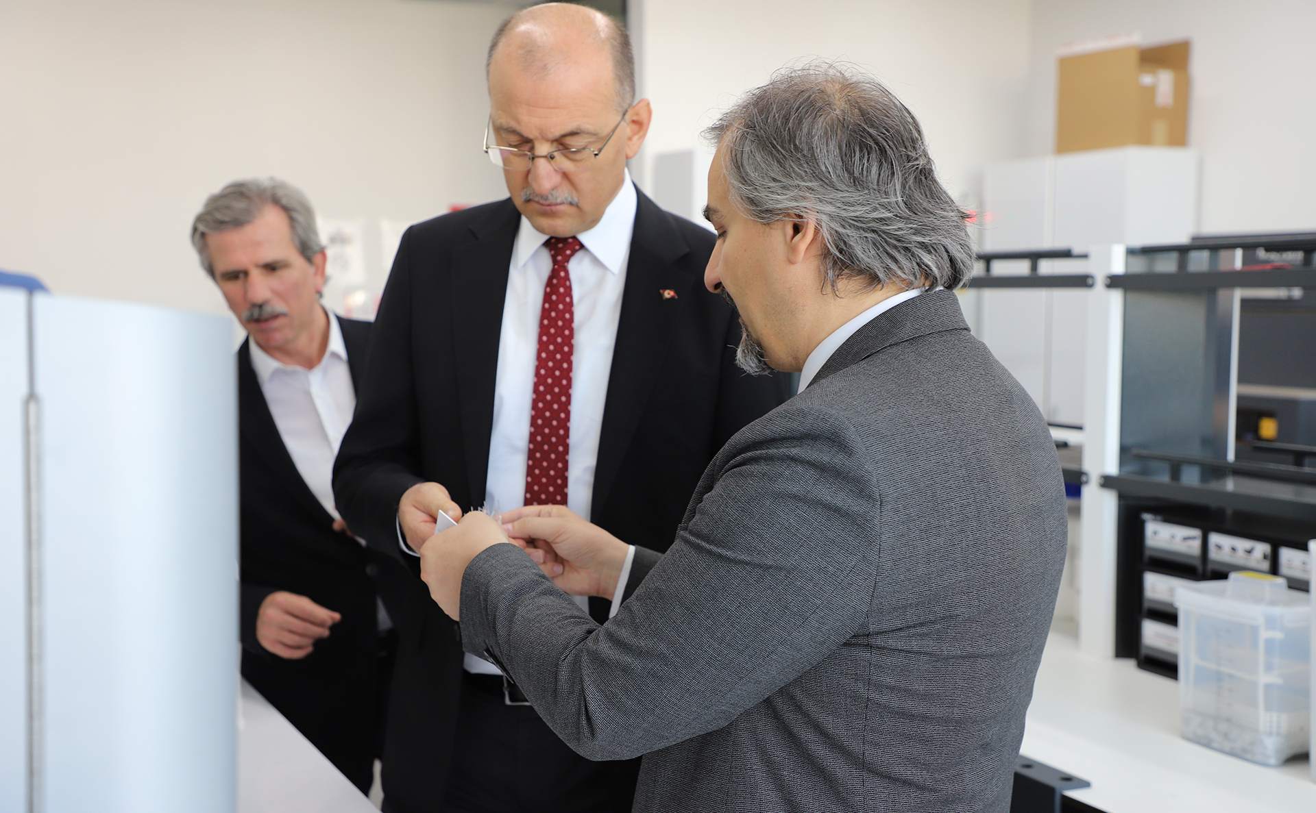 Rektör Yardımcısı Prof. Dr. Emre Biçer ile Genel Sekreterimiz Kadir Ali Seçer eşliğinde Ar-Ge Merkezlerimiz ve laboratuvarlarımızda incelemelerde bulunan ASELSAN Konya Genel Müdürü Bülent Işık, “Sivas Bilim ve Teknoloji Üniversitesi bilimsel araştırmaları ve faaliyetleri ile ülkemizin savunma ihtiyaçlarını tasarlıyor, üretim aşamasına getirip geliştiriyor. Milli çıkarlarımıza en üst seviyede hizmet ediyor.” diye konuştu.