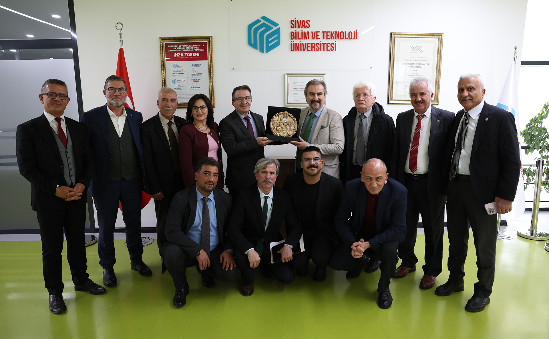 Heyet, Sivas Bilim ve Teknoloji Üniversitesi Rektör Yardımcısı Prof. Dr. Emre Biçer ve Genel Sekreter Kadir Ali Seçer ile bir araya gelerek görüş alışverişinde bulundu.