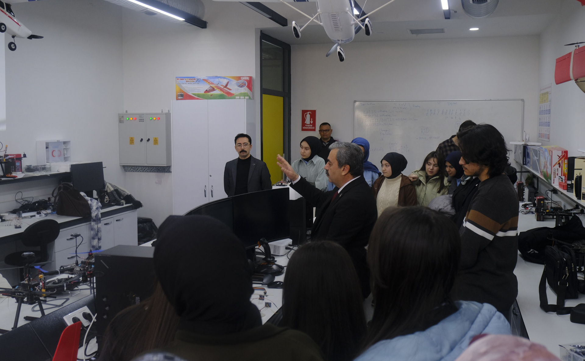 Program kapsamında öğrenciler, SBTÜ Rektörü Prof. Dr. Mehmet Kul eşliğinde Üniversitemizin laboratuvarlarını gezdi. Prof. Dr. Kul, öğrencileri Üniversitemizde yürütülen akademik çalışmalar, teknoloji odaklı eğitim olanakları ve özellikle havacılık ve uzay alanındaki uygulamalar hakkında bilgilendirdi. Ziyaret, öğrencilerin ilgi duydukları bölümleri yerinde görmelerine ve gelecek eğitim planlarına yönelik farkındalık kazanmalarına katkı sağladı.