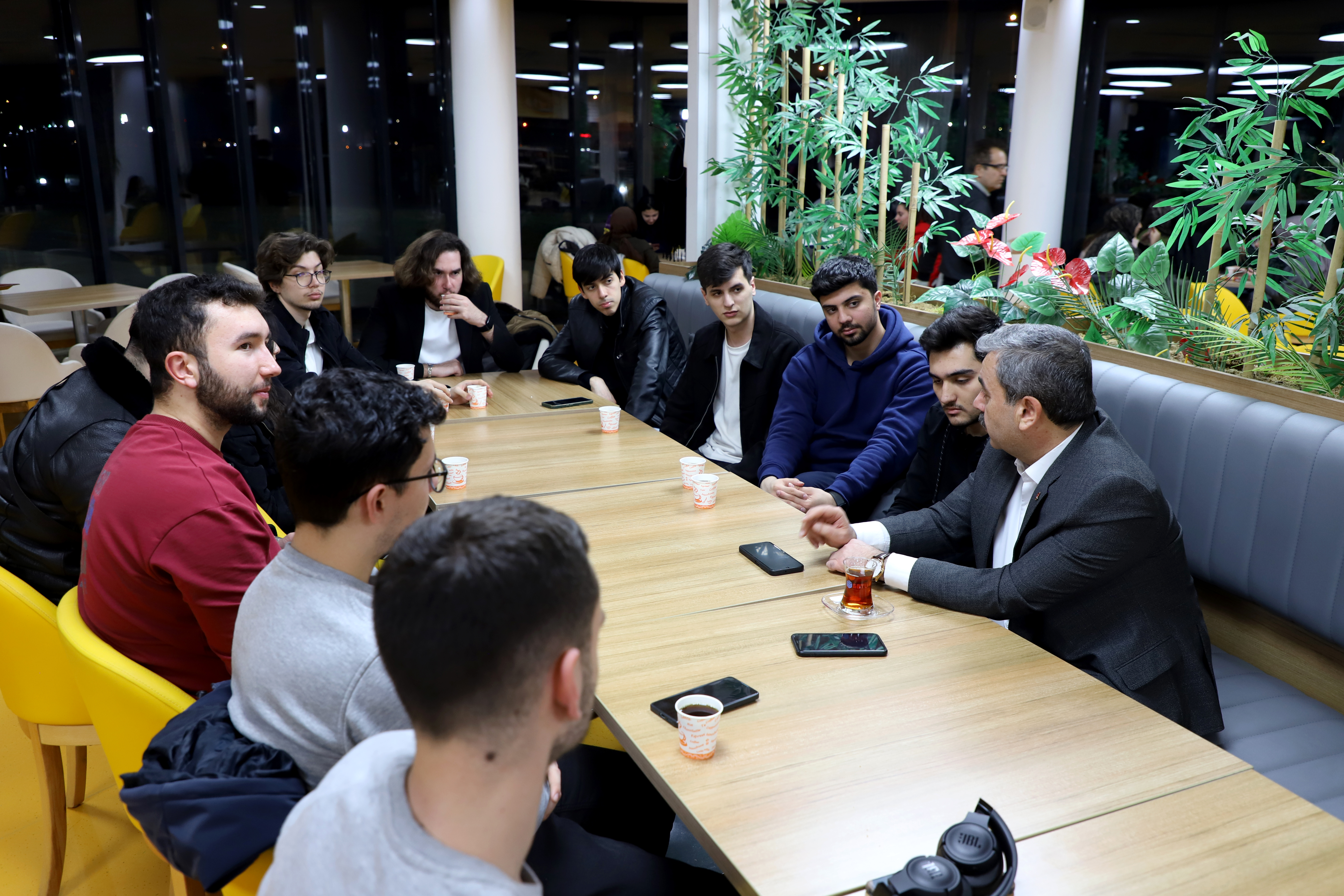 İftarın ardından Bilim Kafe’de, Rektörümüz Prof. Dr. Mehmet Kul öğrencilerimizle bir araya gelerek sıcak ve içten bir sohbet gerçekleştirdi. Gençlerin soruları, fikirleri ve muhabbetiyle gecemiz daha da anlam kazandı.
