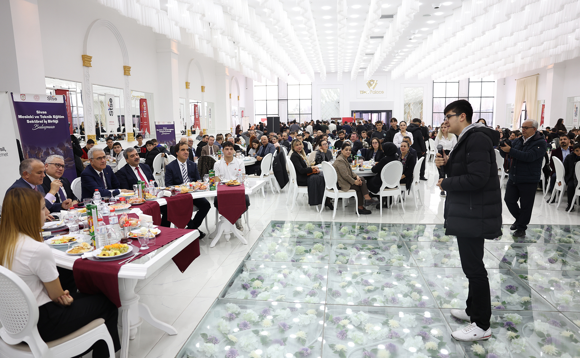 Prof. Dr. Mehmet Kul, Sivas Ticaret ve Sanayi Odası, Sivas Valiliği ve Sivas İl Milli Eğitim Müdürlüğü iş birliğinde düzenlenen “Mesleki ve Teknik Eğitim İş Birliği Buluşması” programına katıldı. Sivas Valisi Yılmaz Şimşek ve il protokolünün katılımıyla West Palace’ta düzenlenen programda; lise ve üniversite düzeyindeki mesleki ve teknik eğitim öğrencileri ile Sivas’ta faaliyet gösteren iş insanları bir araya geldi. Kahvaltı eşliğinde gerçekleşen buluşmada, meslek yüksekokulları ve mühendislik fakülteleri ile 7 meslek lisesinden seçilen öğrenciler, sektör temsilcileriyle doğrudan temas kurma fırsatı buldu. Program kapsamında proje grupları kendilerini tanıtmak için stant açarken, bazı gruplar projelerine ait prototipleri ve tanıtım videolarını katılımcılara sundu.
