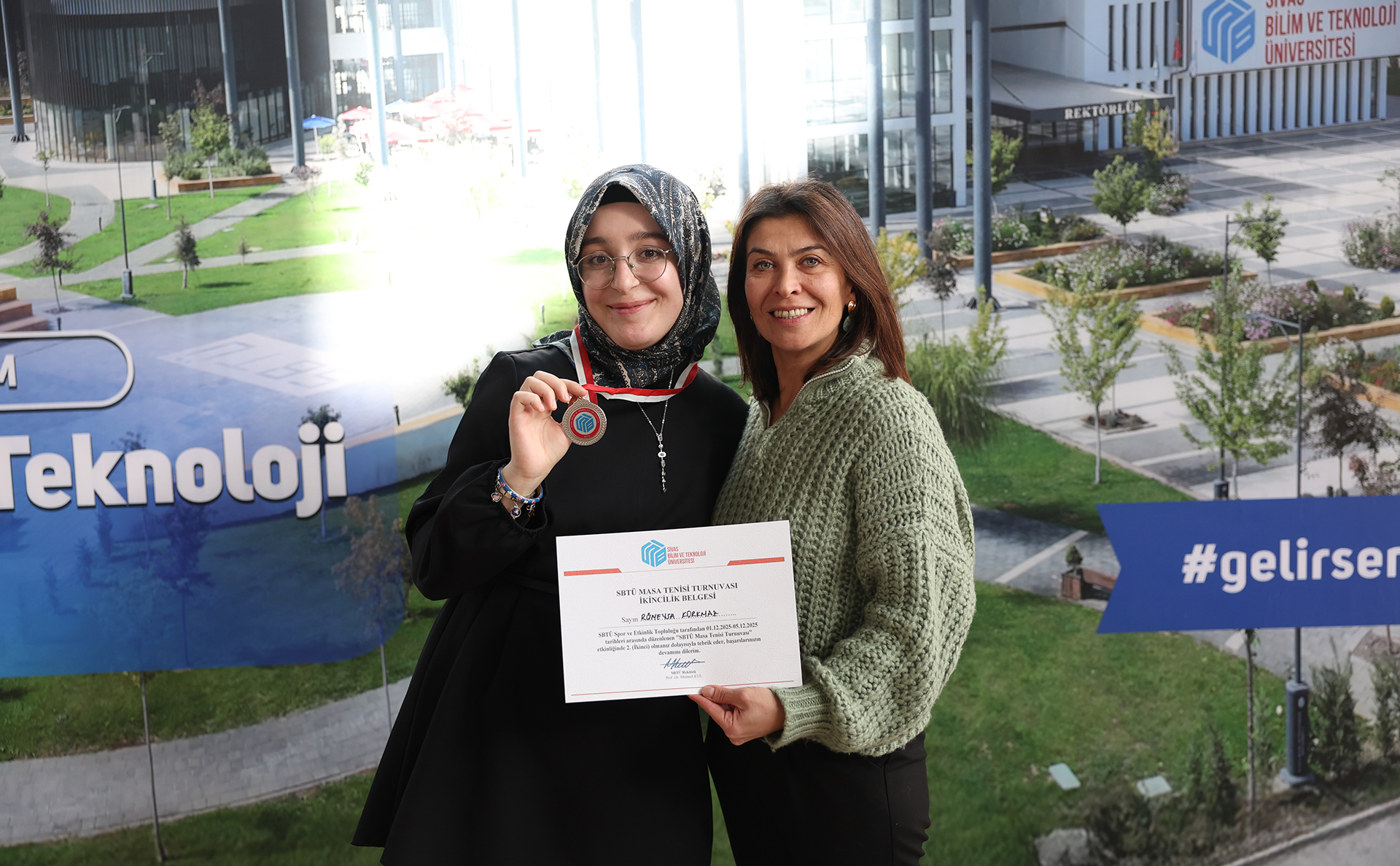 Dereceye giren sporculara madalyalarını ve tebrik belgelerini Sağlık, Kültür ve Spor Daire Başkanı Çetin Özdemir, Öğrenci İşleri Daire Başkanı İsmail Kaya, Kültür ve Spor Şube Müdürü Hülya Bozbıyık, Kurumsal İletişim Koordinatörü Öğr. Gör. Ersin Polat takdim etti.