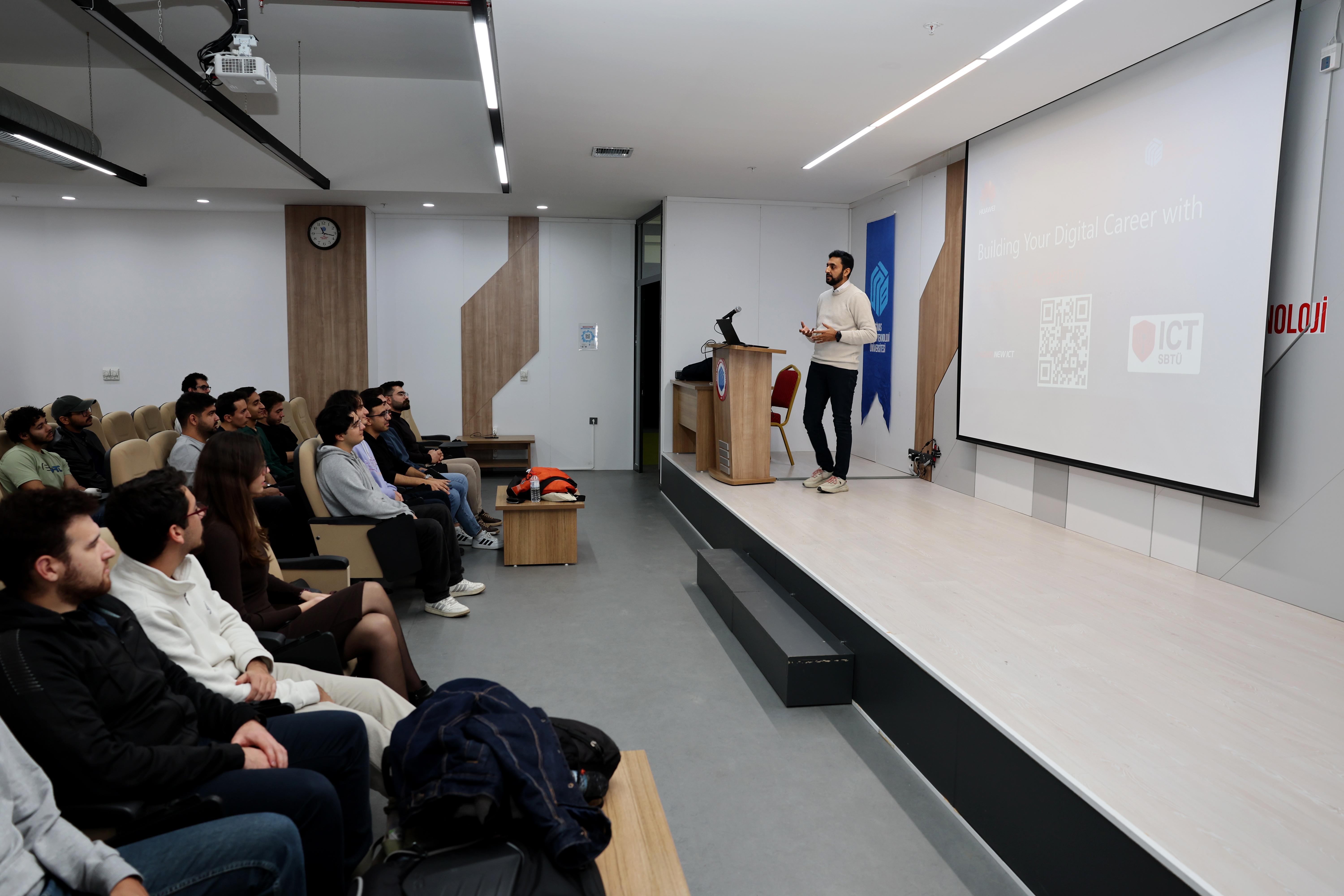 Teknoloji dünyasındaki gelişmeleri yakından takip eden öğrencileri bir araya getirmeyi hedefleyen etkinlik, ICT Topluluğu’nun vizyonu, misyonu ve dönem içerisinde gerçekleştirmeyi planladığı projelerin tanıtımıyla başladı.