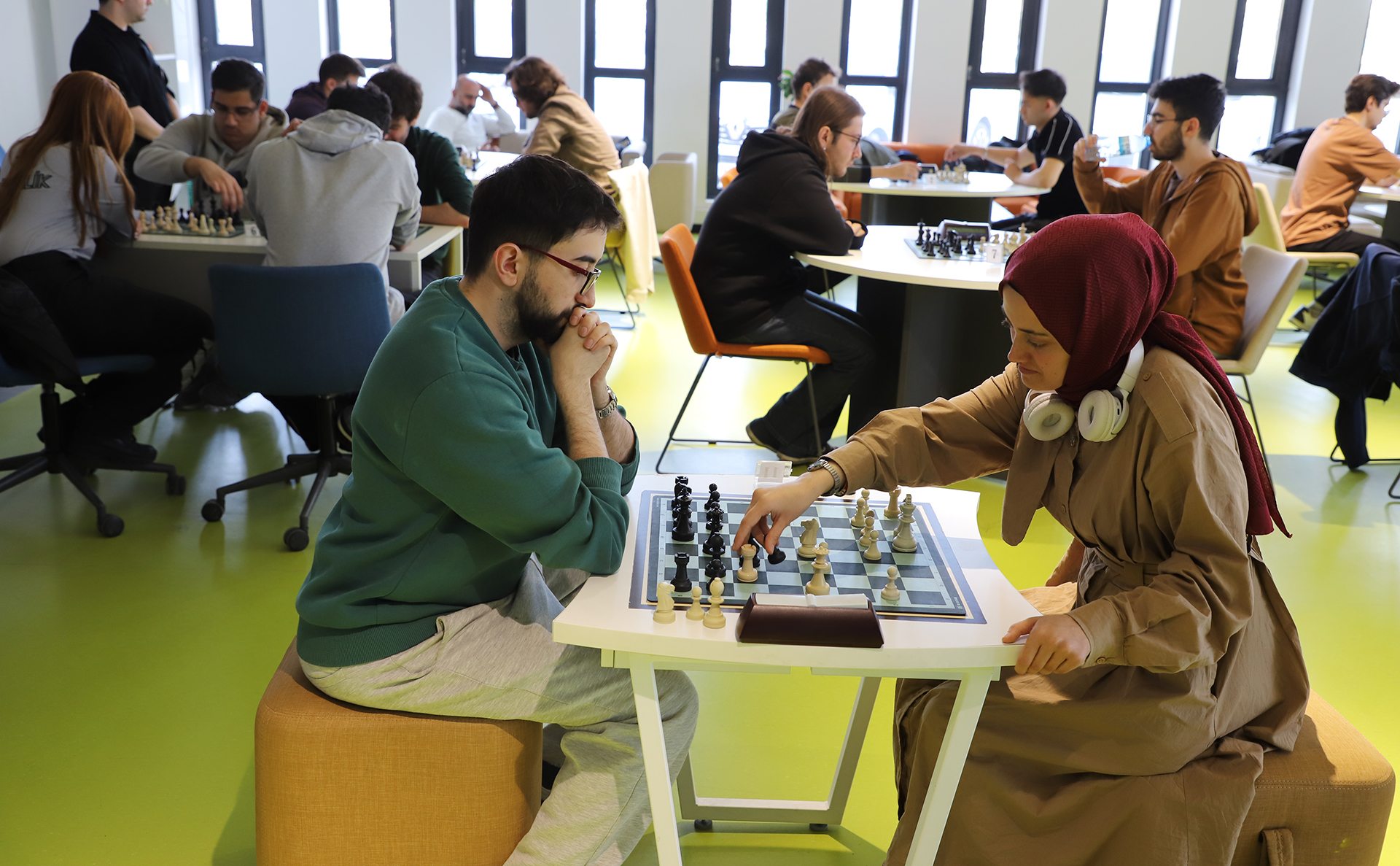 Sivas Bilim ve Teknoloji Üniversitesi (SBTÜ), öğrencilerin zihinsel gelişimine katkı sağlayan etkinliklerine bir yenisini daha ekledi. SBTÜ Zeka Oyunları Topluluğu ile Sivas Satranç İl Temsilciliği iş birliğinde ve SKS Daire Başkanlığı koordinesinde düzenlenen Satranç Turnuvası, Genç Ofis’te yoğun katılımla gerçekleştirildi. Strateji ve zekânın ön planda olduğu turnuvada öğrencilerin yanı sıra akademik ve idari personel de mücadele etti.