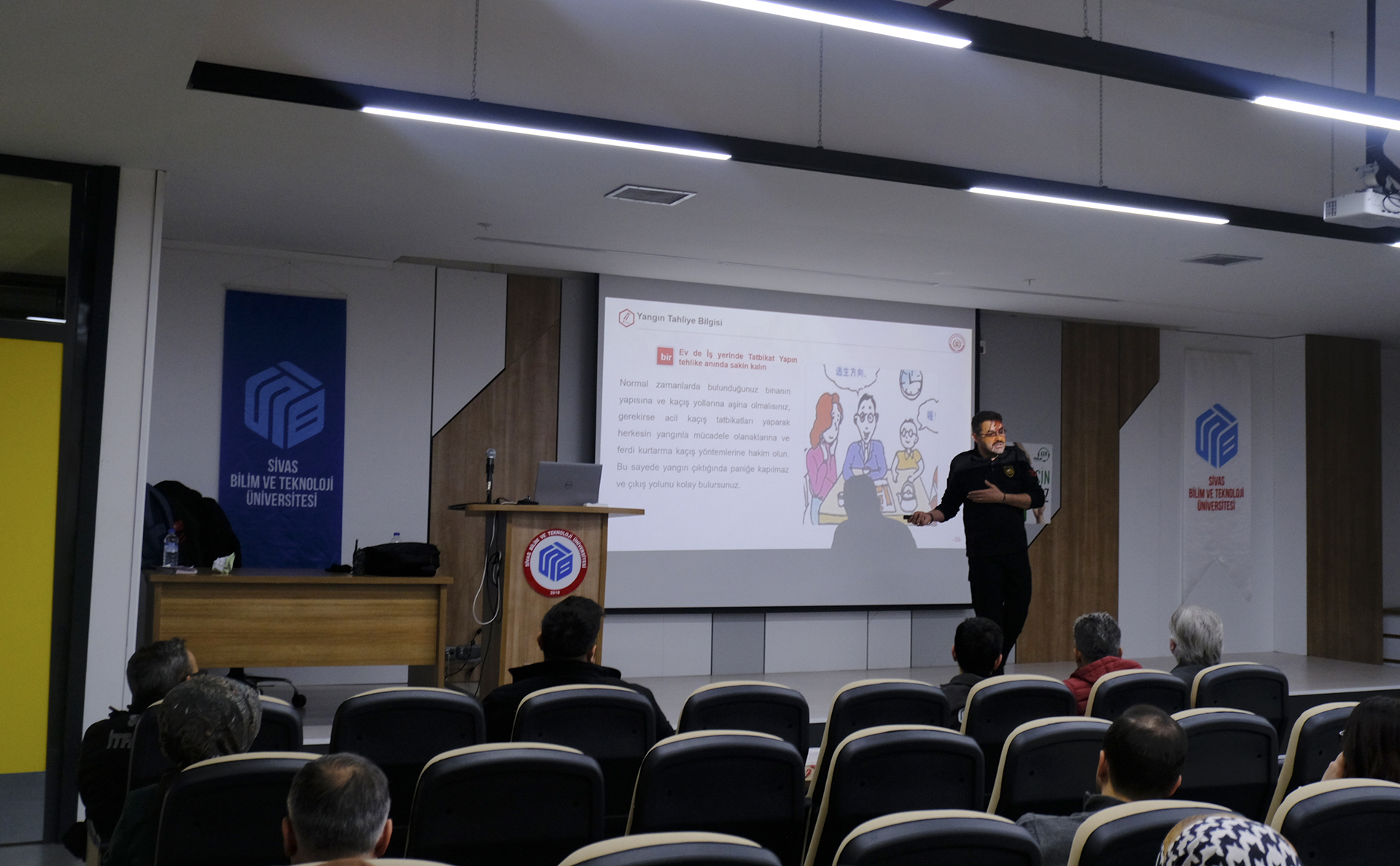 Sivas Bilim ve Teknoloji Üniversitesi (SBTÜ) Sivil Savunma Amirliği ile Sivas Belediyesi İtfaiye Müdürlüğü iş birliğinde Yangın ve Yangından Korunma Eğitimi ile Tatbikatı gerçekleştirildi. Üniversite konferans salonunda düzenlenen eğitimde, yangının çıkış nedenleri, ilk müdahale yöntemleri, yangın söndürme cihazlarının doğru kullanımı ve acil durumlarda yapılması gerekenler katılımcılara uygulamalı örneklerle anlatıldı. Eğitim programının ardından üniversite bahçesinde gerçekleştirilen tatbikatta katılımcılar, gerçek alevler üzerinde yangın söndürme tüplerini kullanarak pratik yapma fırsatı buldu. Yangın anında doğru ve hızlı müdahalenin önemine dikkat çeken tatbikat, başarıyla tamamlandı.