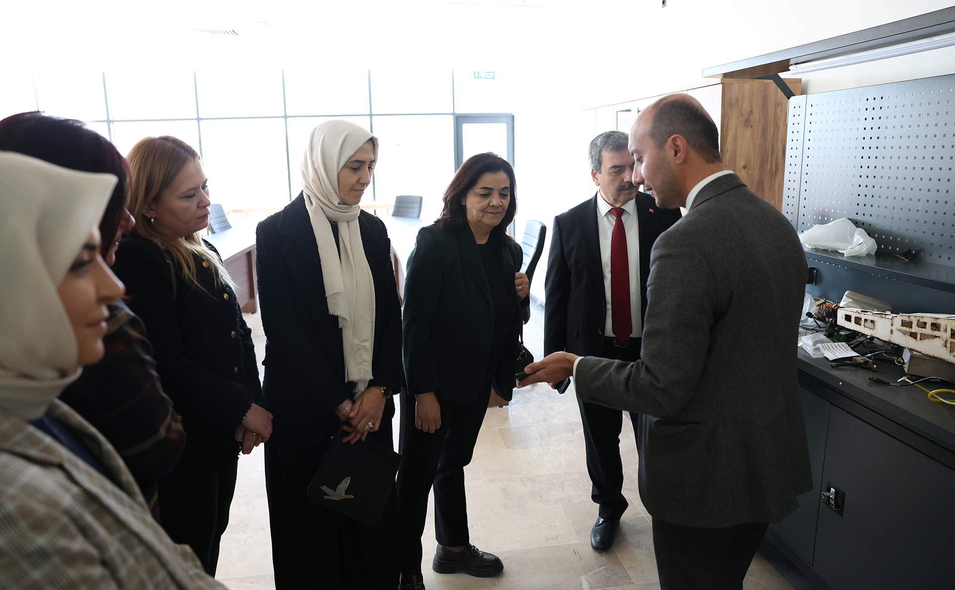 Prof. Dr. Mehmet Kul tarafından Üniversitemizde yürütülen çalışmalar ve teknolojik altyapılarımız hakkında bilgilendirilen İcra Kurulu Başkanı Haksever ve beraberindekiler laboratuvarlarımızı ve eğitim öğretim altyapılarımızı yerinde gözlemleme imkanı buldu.